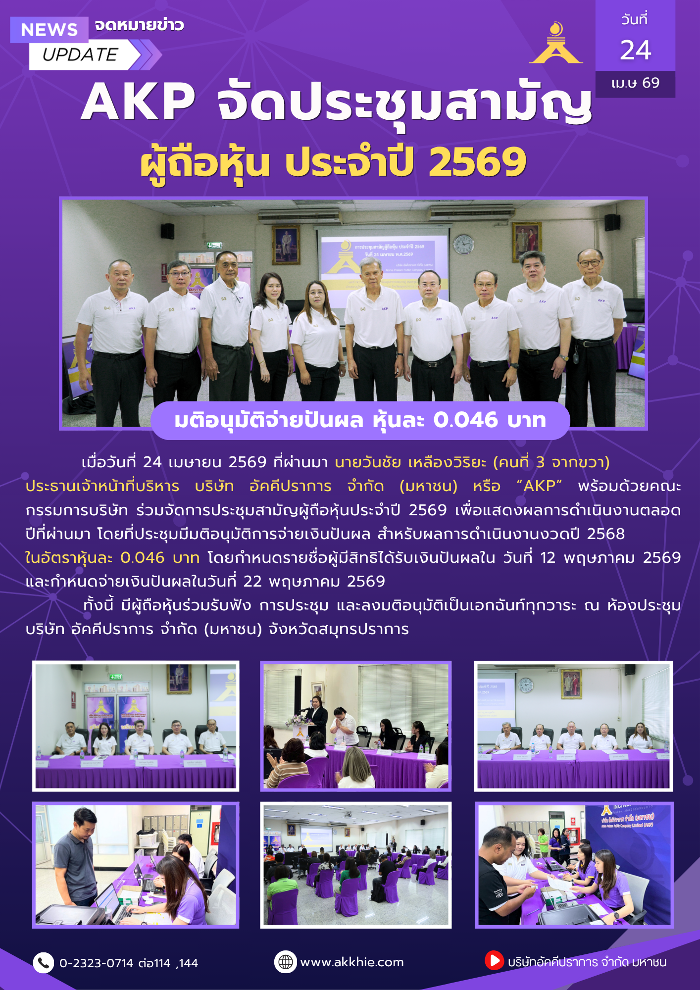 AKP จัดประชุมสามัญผู้ถือหุ้นประจำปี 2569 มติอนุมัติจ่ายปันผล หุ้นละ 0.046 บาท
